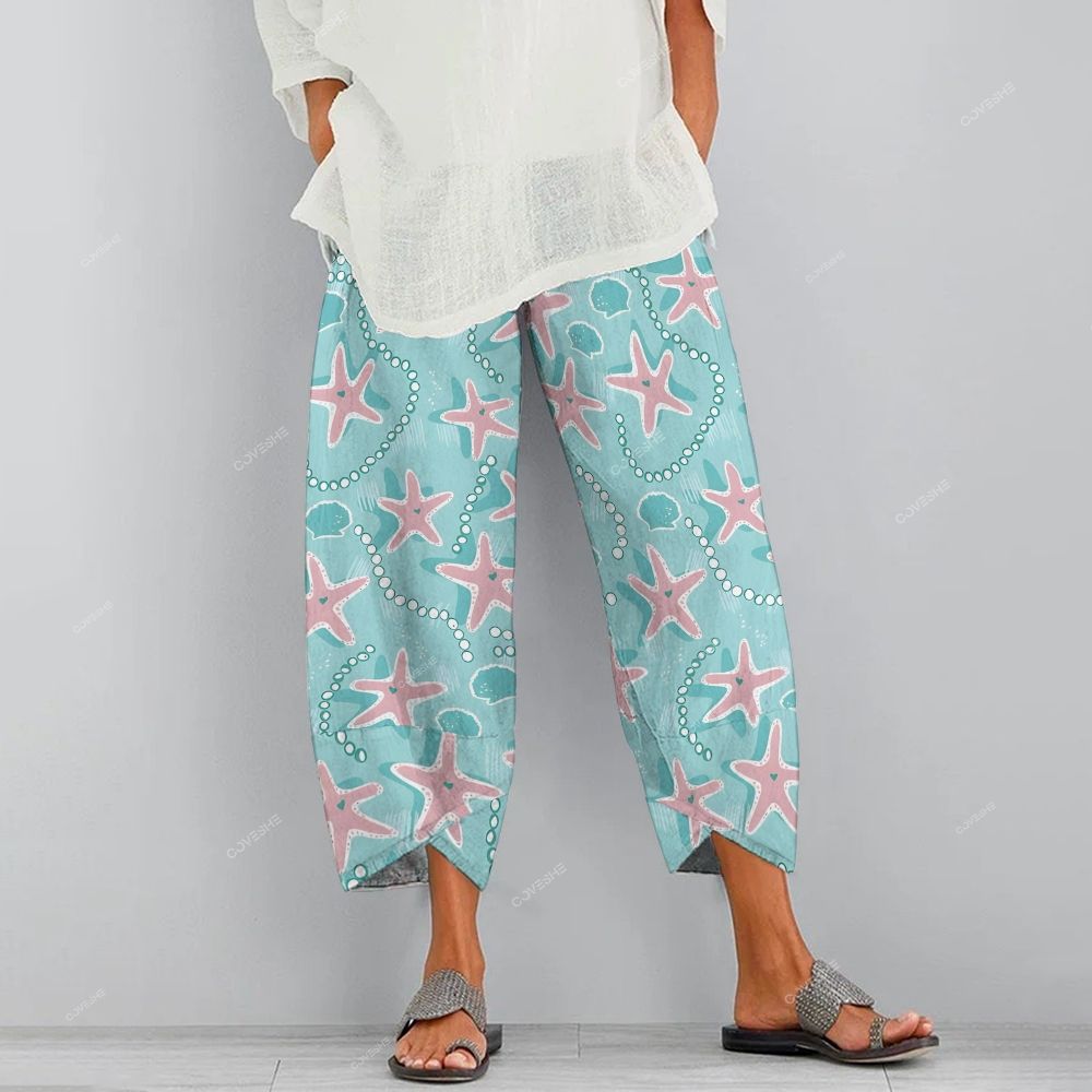 Women's Casual Pink Starfish Printed Pants