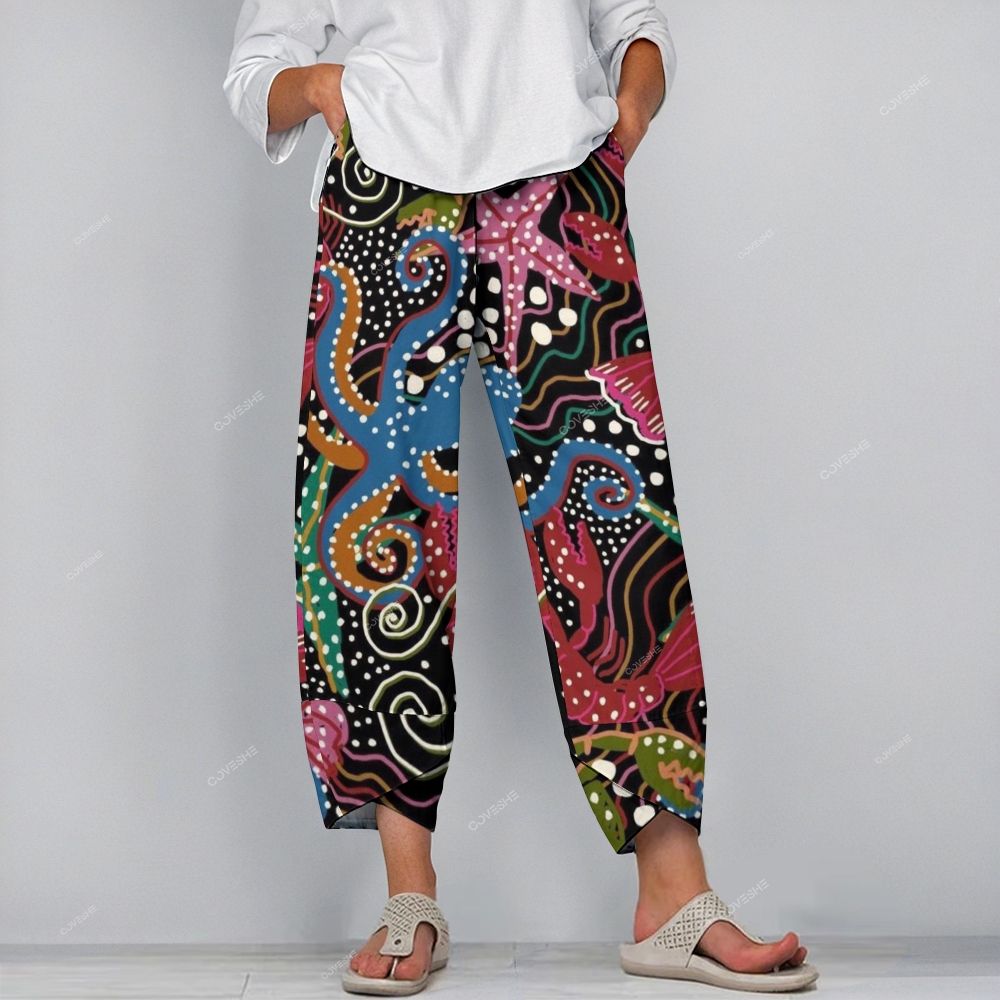 Women's Casual Polka Dot Octopus Starfish Printed Pants