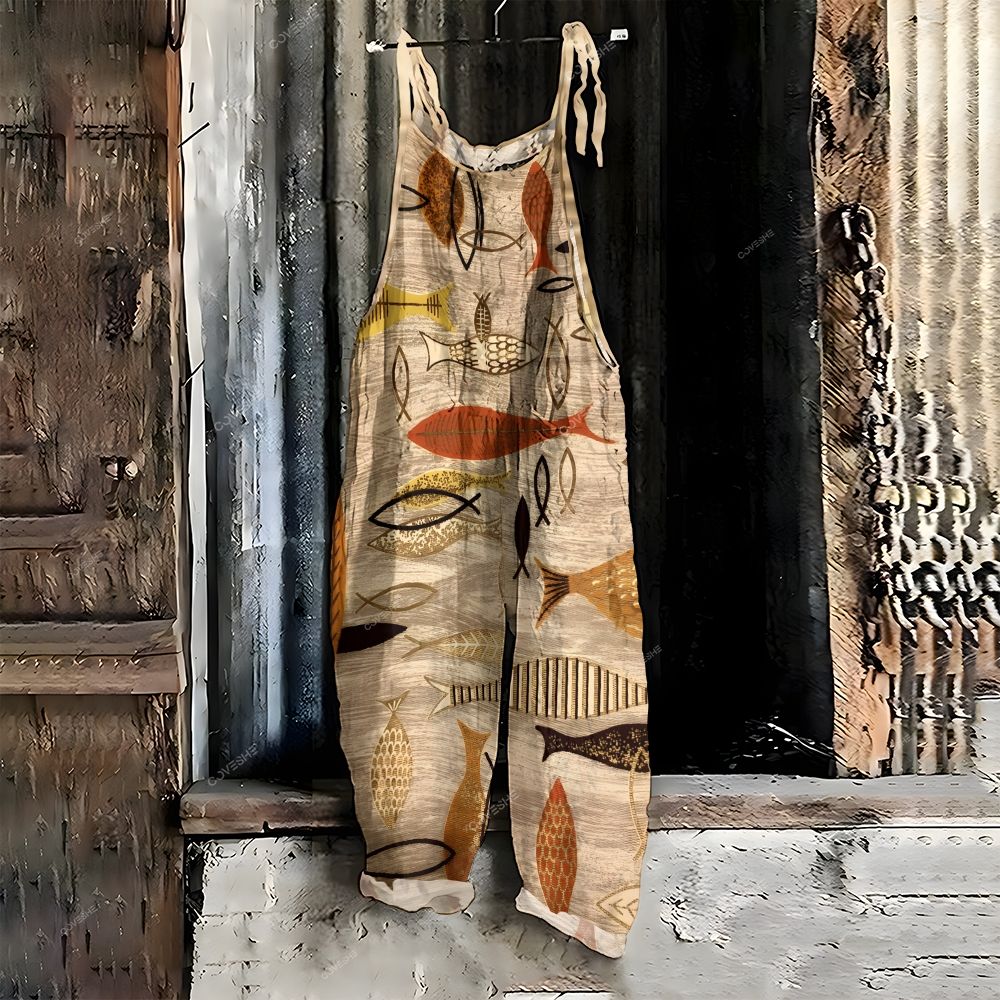 Women's Casual Retro Fish Printed Jumpsuit