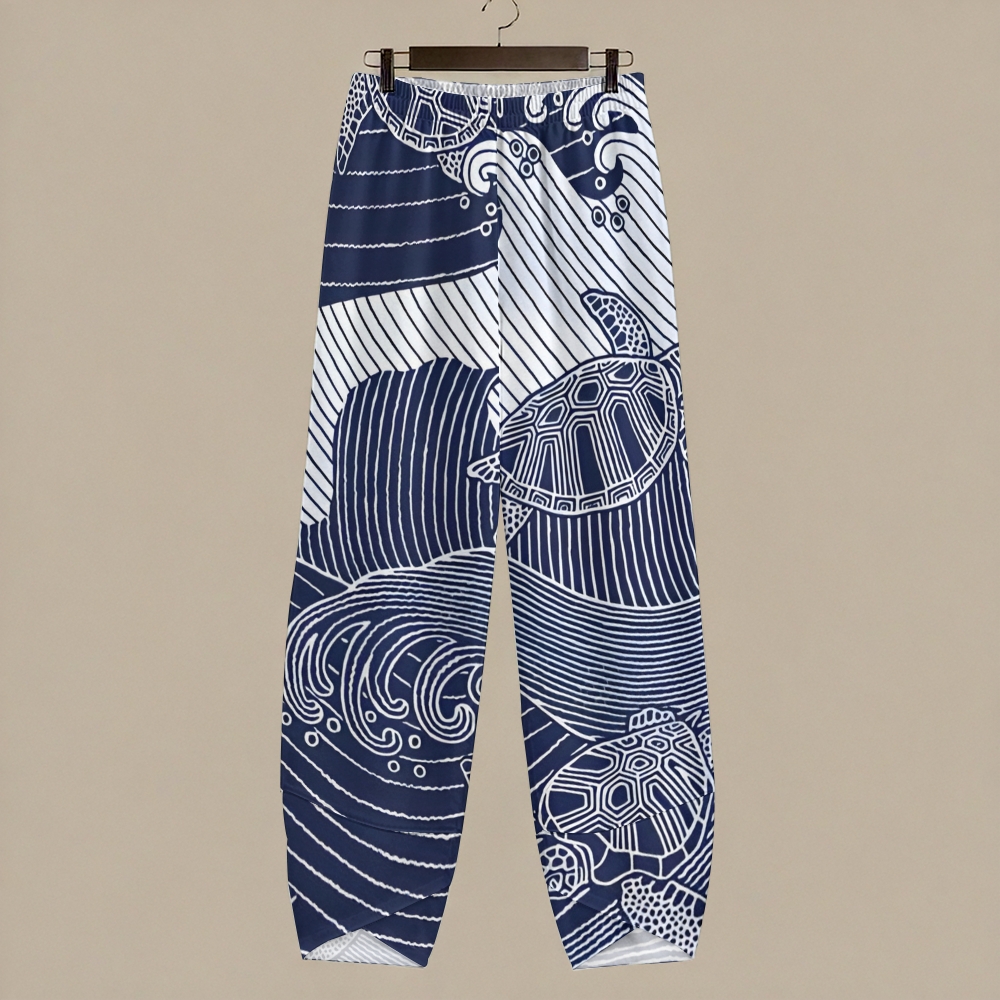 Women's Casual Waves Sea Turtle Printed Pants