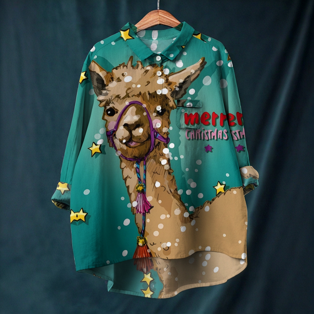 Women's Christmas Alpaca Printed Long Sleeve Casual Shirt