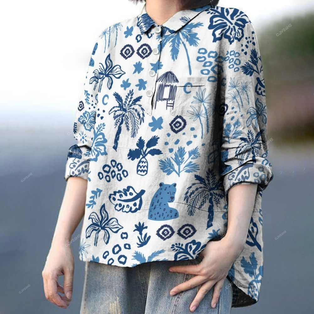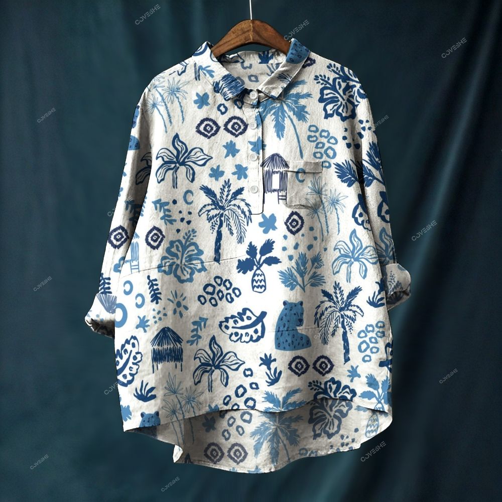 Women's Coconut Tree Flower Printed Casual Long Sleeve Shirt