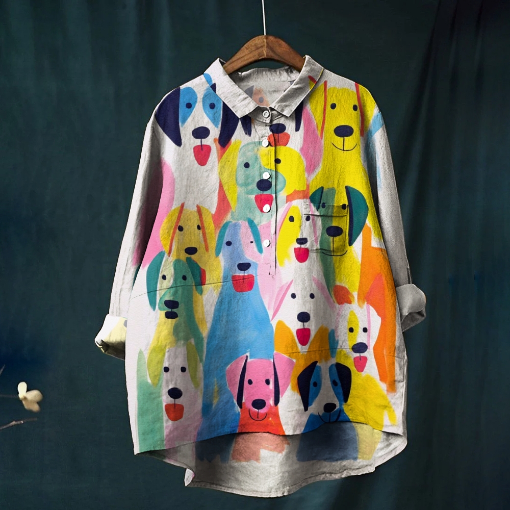 Women's Colorful Dog Print Casual Shirt