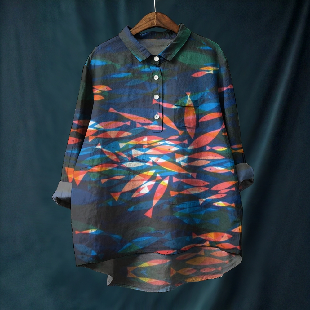 Women's Colorful Fish Printed Casual Long Sleeve Shirt