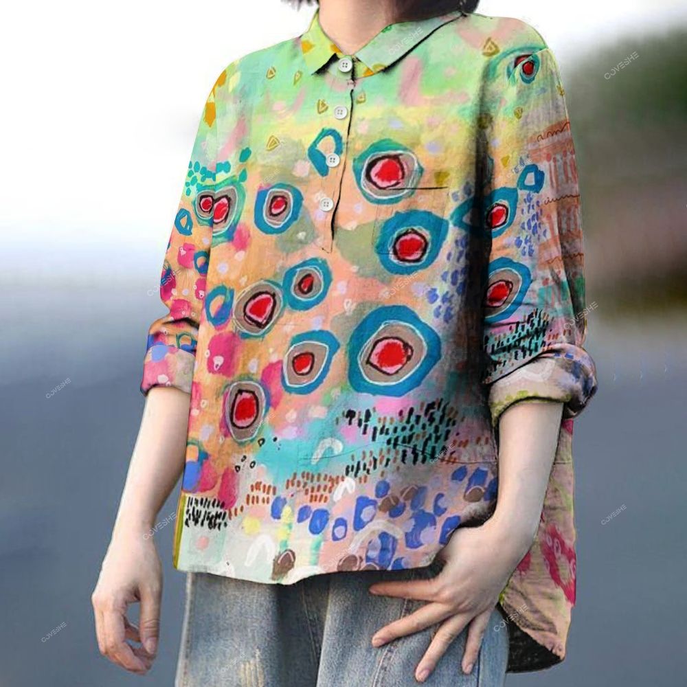 Women's Colorful Geometry Printed Casual Long Sleeve Shirt