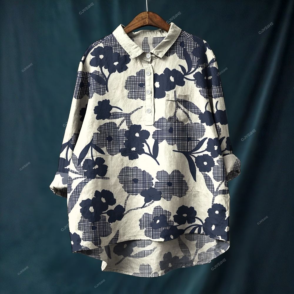 Women's Flower Printed Casual Long Sleeve Shirt