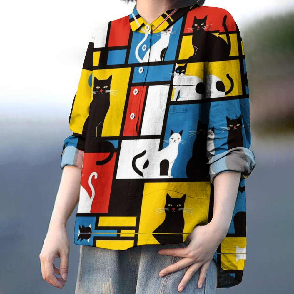 Women's Funny Cat Art Printed Casual Shirt