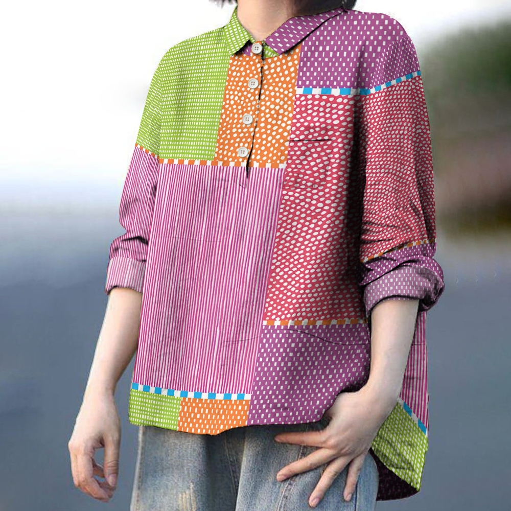 Women's Geometric Splicing Printed Casual Long Sleeve Shirt