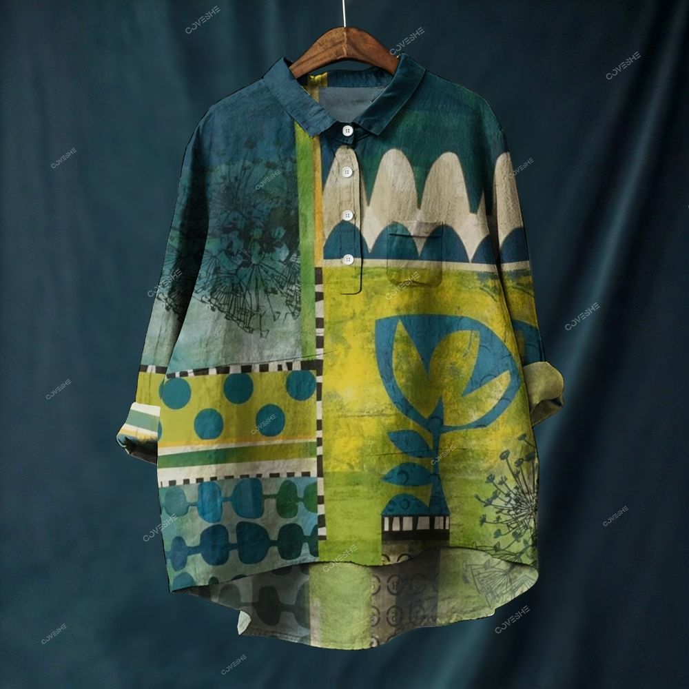 Women's Geometry Flower Printed Casual Long Sleeve Shirt