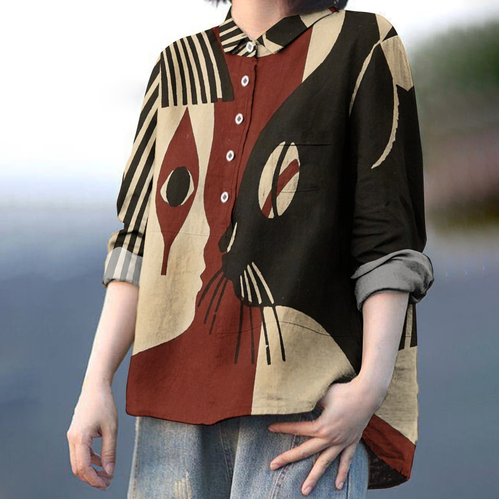 Women's Girl And Cat Printed Casual Shirt