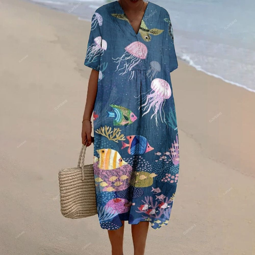 Women's Marine Life Printed Flowy Dress
