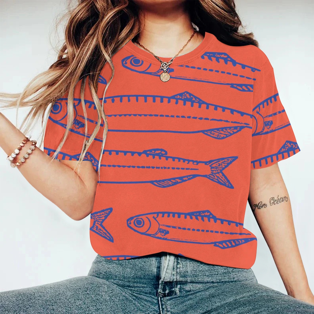 Women's Sardines Printed Round Neck T-Shirt