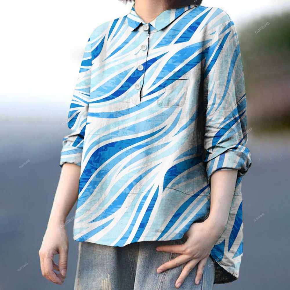 Women's Sea Wave Pattern Printed Casual Long Sleeve Shirt