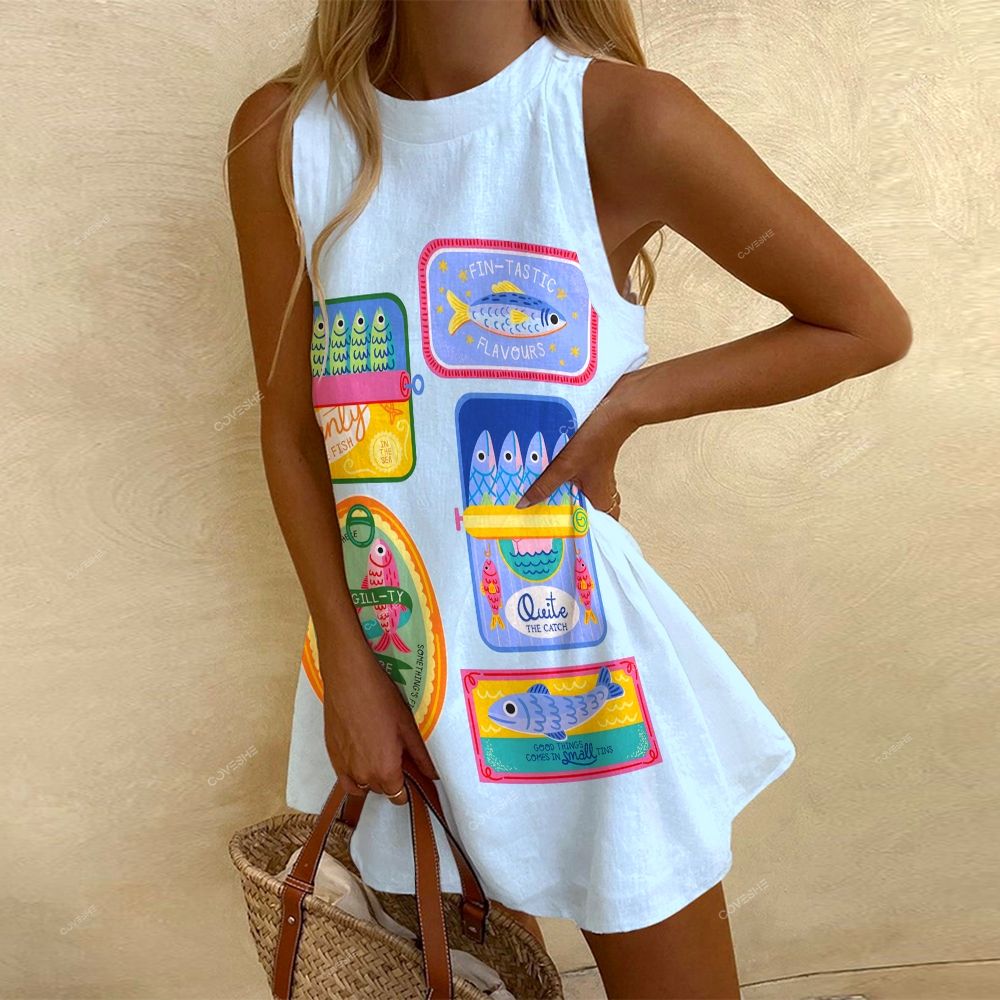 Women's Sleeveless Canned Sardines Printed Dress