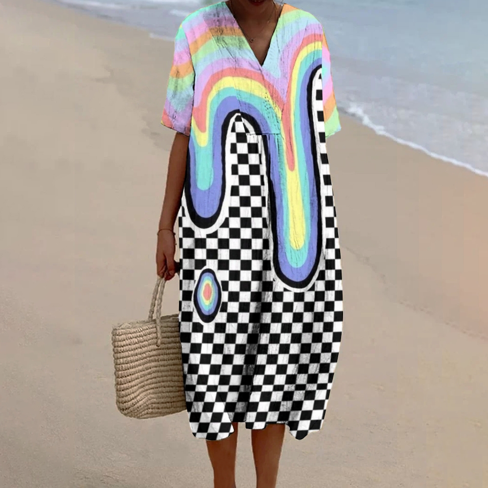Women's Square Stripes Printed Flowy Dress