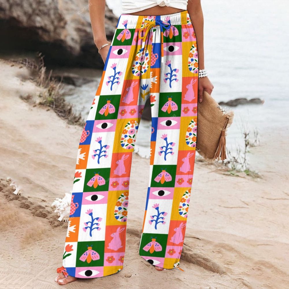 Women's Wide Leg Casual Artistic Eyes Flower Printed Pants