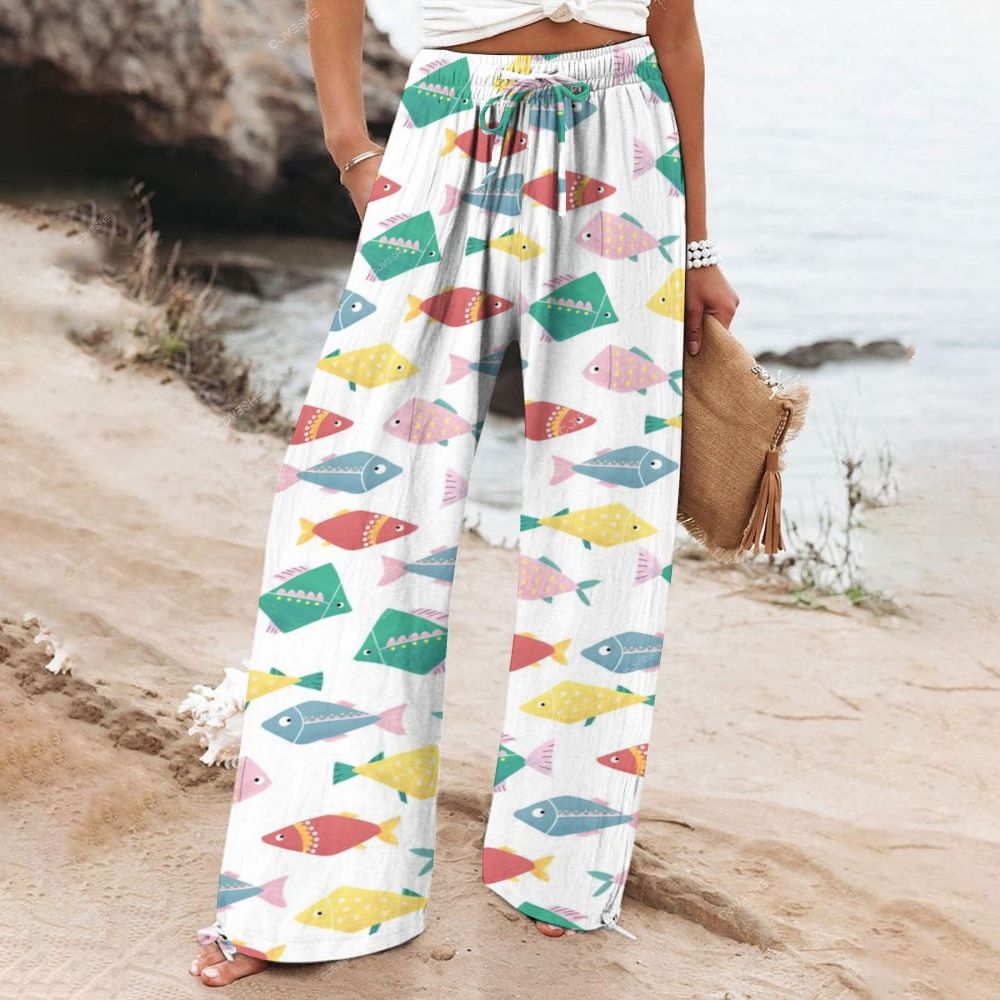 Women's Wide Leg Casual Colorful Geometric Fish Printed Pants
